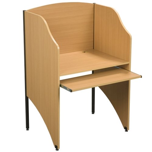 89830 Perfect for libraries where more privacy is needed! It includes a pull out keyboard shelf. Features: - Panels constructed from 5/8'' thick laminate particle board for heavy duty use - Pull out keyboard shelf - Black metal connectors join the Add-A-Carrel in a row in any size configuration - Leveling glides included - Teak laminate with black metal frame Specifications: - Keyboard surface dimensions: 25 1/2''H x 31 1/2''W x 11 3/4''D - Desk Work Surface dimensions: 29''H x 31 1/2''W x 23 3/4''D - Overall dimensions: 48''H x 32 3/4''W x 24 1/2''D
